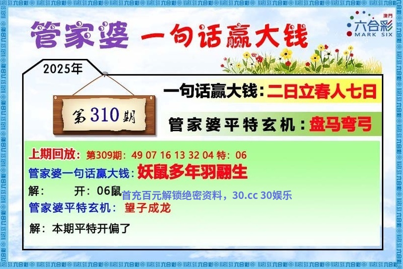 309期一句话赢大钱【妖鼠多年羽翮生】
